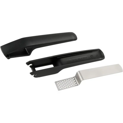 Die Fackelmann Knoblauchpresse mit schwarzem Kunststoffkörper ist ausgestattet mit einem Sieb aus Edelstahl, ergonomischen Griffen, einen Presskorb für weniger Kraftaufwand und einem herausnehmbaren Sieb mit konischen Löchern. Die Kanten am Unterteil ermöglichen ein leichtes Absteifen des gepressten Knoblauch und der Reste. Die Fackelmann Knoblauchpresse ist komplett zerlegbar und spülmaschinengeeignet.
