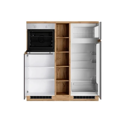 Die Küchenzeile Turin von Held Möbel mit hochwertigen MDF-Fronten begeistert optisch durch die klaren Linien sowie die zweifarbige Gestaltung. Da die Schränke in zwei Farbkombinationen verfügbar sind, können Sie die Küche im Mix-and-Match Stil erweitern. Zusätzliche Akzente werden durch die 38 mm starke Arbeitsplatte im Beton Dekor gesetzt.