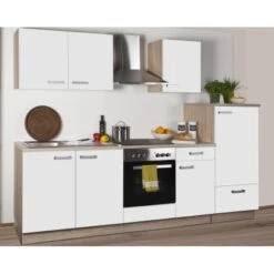 Küchenzeile Litra 270 Cm Weiß Melamin-Sonoma Eiche Kühlschrank Rechts