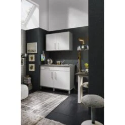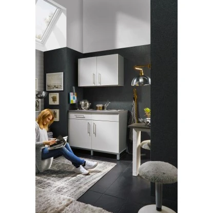 Die Küchenzeile Rack-Time Single mit einer Breite von 120 cm überzeugt mit moderner Optik und einem unschlagbaren Preis-Leistungs-Verhältnis. Die Küche besticht insbesondere durch die Kombination aus Design, Funktion und Robustheit. Alle Möbelteile werden in Deutschland gefertigt und zeichnen sich durch hochwertige Qualität aus. Die teilweise mit Metall-Schubladen ausgestatteten Unterschränke und der Hängeschrank bieten viel Stauraum für Ihre Küchenutensilien. Die Scharniere sind mit Dämpfung ausgestattet. Alle Unterschränke werden auf einem Metallgestell montiert. Die Küchenzeile besteht aus Spüle mit Unterschrank, einem Unterschrank und einem 2-Plattenkochfeld sowie einem Hängeschrank. Die Arbeitsplatte wird ohne Ausschnitte in einer Stärke von 38 mm geliefert.