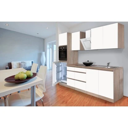 Respekta Küchenzeile GLRP270HESWM Grifflos 270 Cm Weiß Matt-Sonoma Eiche