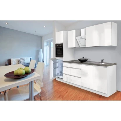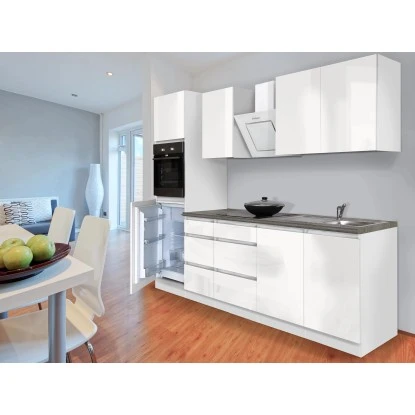 Respekta Küchenzeile GLRP270HWW Grifflos 270 Cm Weiß Hochglanz