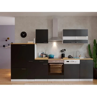 Ein funktioneller Küchenblock mit bereits integrierten Elektroeinbaugeräten. Der Küchenblock weiß mit einem zeitlosen Design und einer aktuellen Farbkombination zu gefallen. Dank der hochwertigen Ausstattung, ist Ihnen ein hohes Maß an Komfort garantiert. Als besonderes Extra sind alle Scharniere mit der komfortablen Soft-Close Funktion ausgestattet. Der Küchenblock verfügt über eine Gesamtbreite von 310 cm und lässt sich ganz nach Ihren Wünschen wechselseitig aufbauen. Alle Holzteile sind zerlegt und eignen sich dank einer detaillierten Aufbauanleitung zur einfachen Selbstmontage.