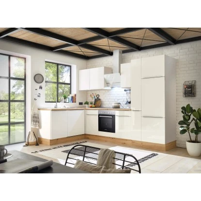Das Respekta Küchenzeile Marleen ist in verschiedenen Farben erhältlich und schafft durch den Materialmix von Elementen in Holz- und Griffleisten in Aluminiumoptik ein modernes Design. Die Schränke bieten Ihnen viel Stauraum und schließen dank der Soft Close Funktion besonders geräuscharm. Unebenheiten im Boden gleichen Sie mit den höhenverstellbaren Füßen ganz einfach aus. Die Zeile kommt in Winkelform.