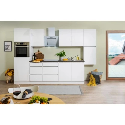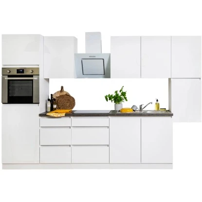 Sie wollen Ihrer Küche zu neuem Glanz verhelfen, haben aber erst kürzlich neue Elektrogeräte gekauft oder finden einfach nicht die richtige Küchenzeile mit bereits integrierten Elektrogeräten? Dann ist die grifflose Respekta Premium Küchenzeile ohne E-Geräte LBGLRP320HWW genau das Richtige für Sie. Die weißen Hochglanzfronten des Leerblocks verleihen Ihrer Küche ein modernes Design und zudem wirkt Ihre Küche durch die grifflosen Fronten ruhig und elegant. Die geräumigen Schränke sorgen mit einer komfortablen Soft-Close Funktion in dieser perfekt abgerundeten Küchenzeile für vielfältige Stauraummöglichkeiten für Vorräte und Küchenutensilien.