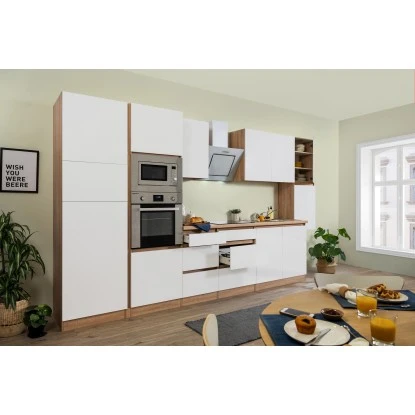 Respekta Premium Küchenzeile Grifflos 385 Cm Weiß Matt-Eiche Sägerau