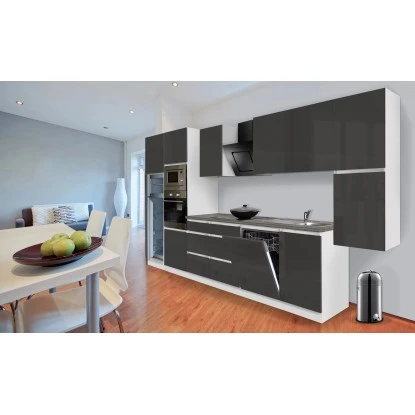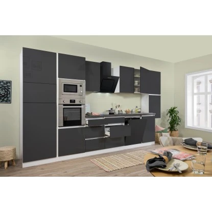 Respekta Premium Küchenzeile Grifflos 395 Cm Grau Hochglanz-Weiß