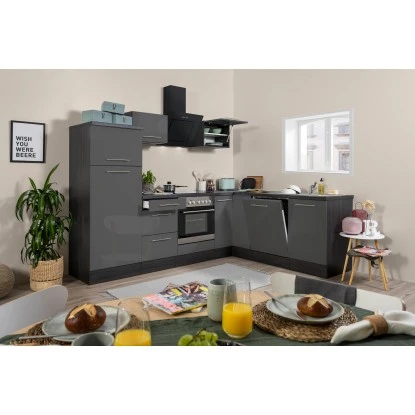 Respekta Premium Winkelküche 260 X 200 Cm Grau Hochglanz-Eiche Grau