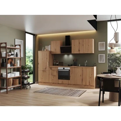 Die Respekta Selection Küchenzeile Elisabeth 280 cm bietet Ihnen alles, was Sie erwarten, um Ihren Traum von einer modernen und funktionalen Küche zu verwirklichen. Mit einer Arbeitshöhe von 91 cm und höhenverstellbaren Sockelfüssen ermöglicht sie Ihnen ein komfortables und ergonomisches Kochen. Dank der Schubkästen und Auszüge mit Vollauszug und Dämpfung, sowie der Glaseinlegeböden bei den Hängeschränken können Sie den Stauraum optimal ausnutzen. Profitieren Sie von der Lieferung fertig montierter Küchenschränke und erhalten Sie eine leistungsstarke und moderne Küchenlösung, die Sie über viele Jahre hinweg begleiten wird.