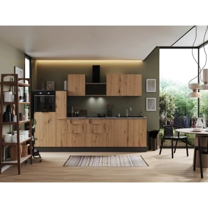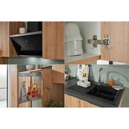 Die Respekta Selection Küchenzeile Elisabeth 310 cm bietet Ihnen alles, was Sie erwarten, um Ihren Traum von einer modernen und funktionalen Küche zu verwirklichen. Mit einer Arbeitshöhe von 91 cm und höhenverstellbaren Sockelfüssen ermöglicht sie Ihnen ein komfortables und ergonomisches Kochen. Dank der Schubkästen und Auszüge mit Vollauszug und Dämpfung, sowie der Glaseinlegeböden bei den Hängeschränken können Sie den Stauraum optimal ausnutzen. Profitieren Sie von der Lieferung fertig montierter Küchenschränke und erhalten Sie eine leistungsstarke und moderne Küchenlösung, die Sie über viele Jahre hinweg begleiten wird.