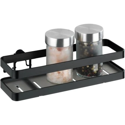 Im Gewürzregal Gala werden alle Gewürze beim Kochen stets griffbereit aufbewahrt. Das Regal mit einer Ablagefläche (22 x 6,8 x 5 cm) aus grauem Kunststoff bietet ausreichend Platz für bis zu vier handelsübliche Gewürzbehälter. Natürlich finden auch weitere Dosen und viele andere Küchenhelfer eine attraktive Aufbewahrungsmöglichkeit in Griffnähe.