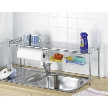 Mit dem praktischen Spülbeckenregal Exquisit von Wenko wird mehr Stauraum in der Küche geschaffen ganz ohne Umbau-Maßnahmen. Ungenutzter Platz hinter der Spüle wird ganz einfach nutzbar gemacht.